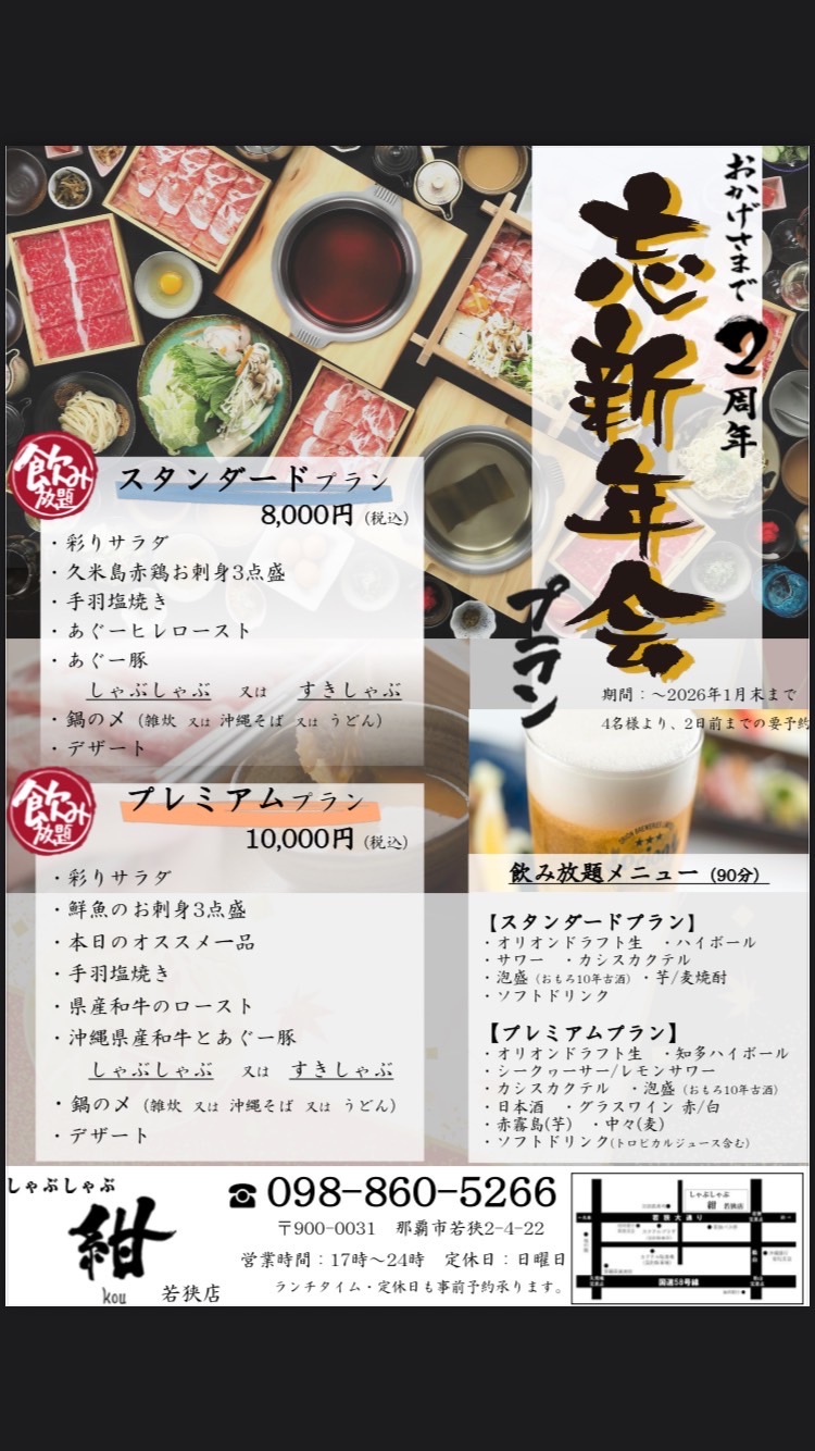 【しゃぶしゃぶ紺 若狭店】2周年忘新年会プラン 2025年12月10日