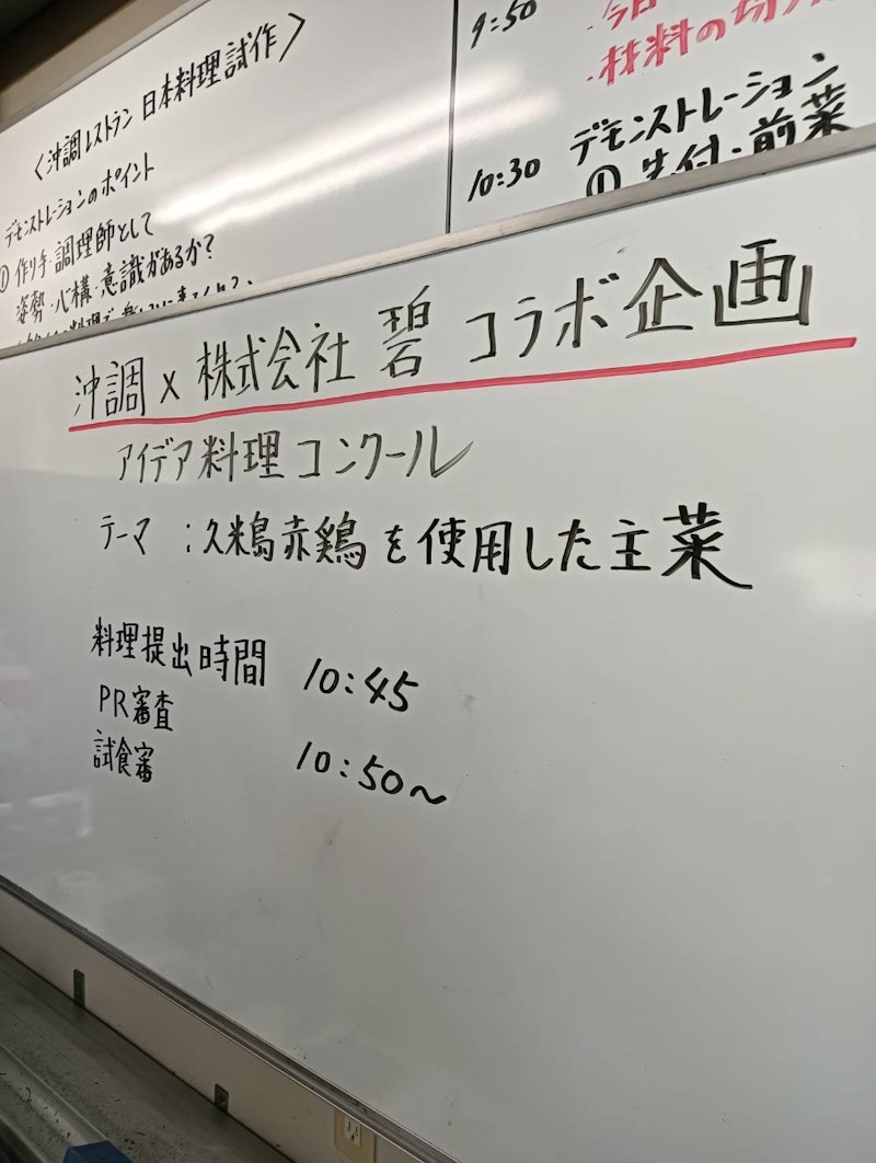 『久米島赤鶏を使用した主菜』と設定し、原価率も踏まえながらメニューを作成してもらいました!